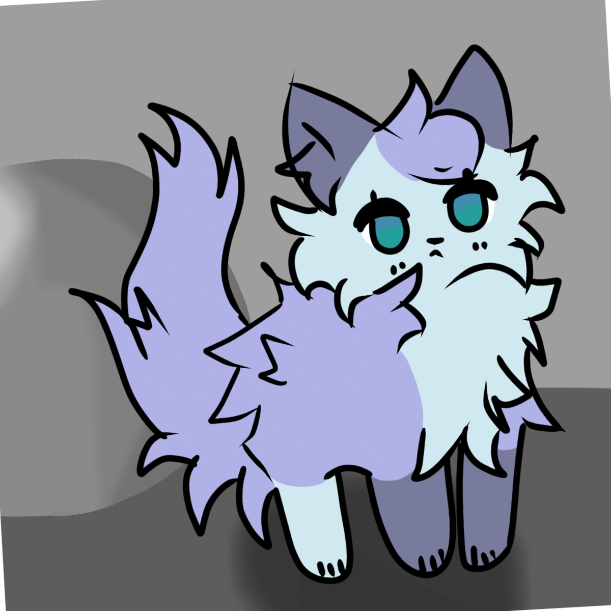 Seastripe is a pale, blue-gray she-cat with a darker back and tail, and dark blue-gray ears and forepaws. She has darker tipped fur and cyan eyes (Update 11 January 2025)