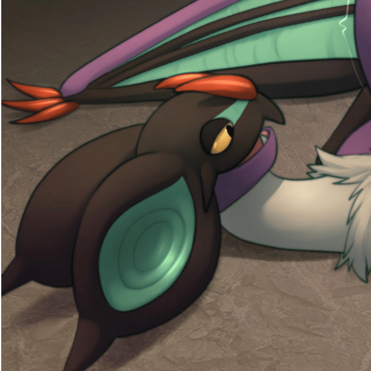 A laid-back and friendly Noivern with an insatiable appetite, he loves indulging in massive meals and savoring the bliss of a full belly. Despite his gluttonous nature, he's good-natured and enjoys lounging around, basking in post-feast satisfaction. His wobbling gut is a testament to his it.